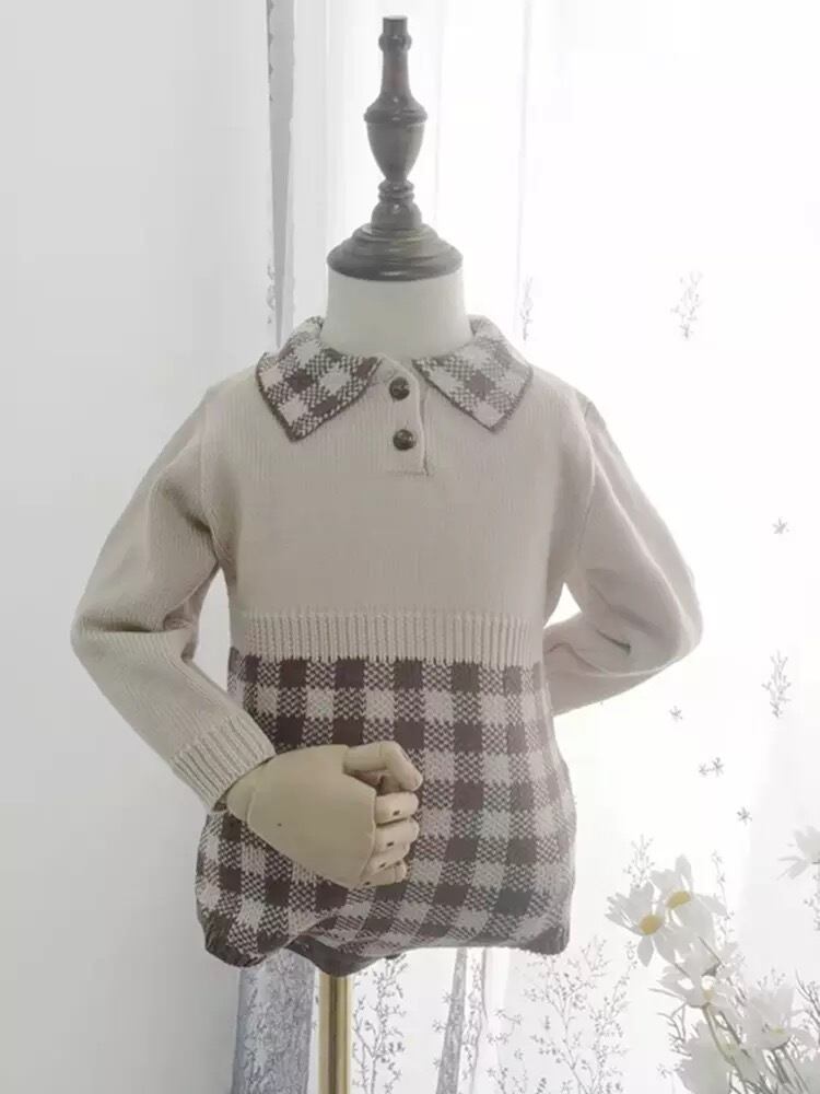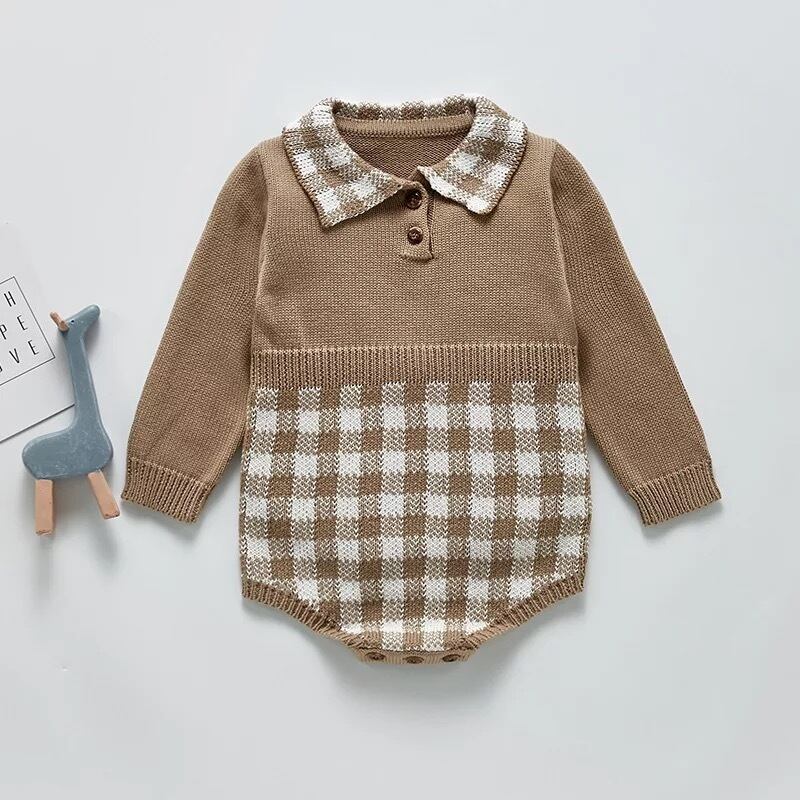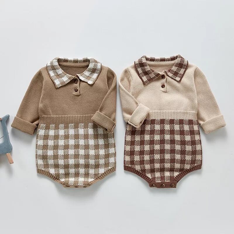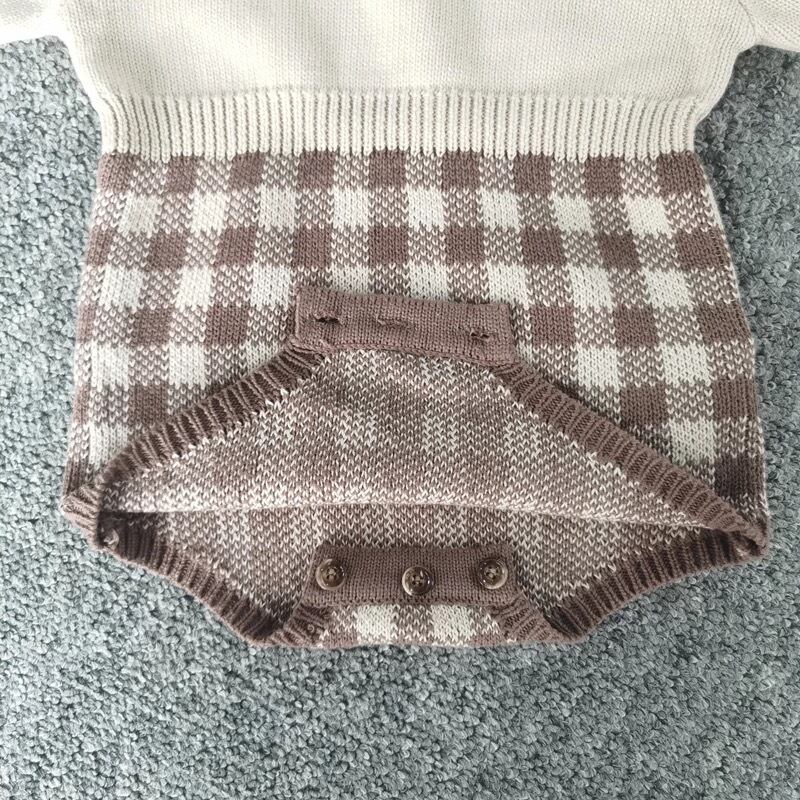【即納】チェック ニットロンパース