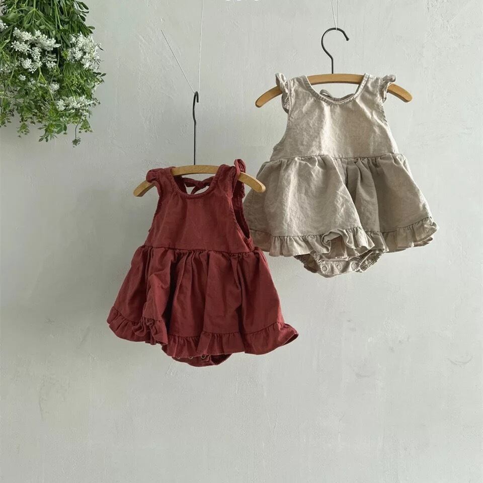 【即納】コットンフリルスカートロンパース